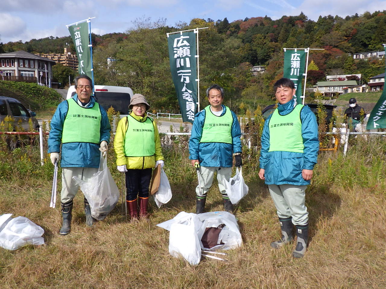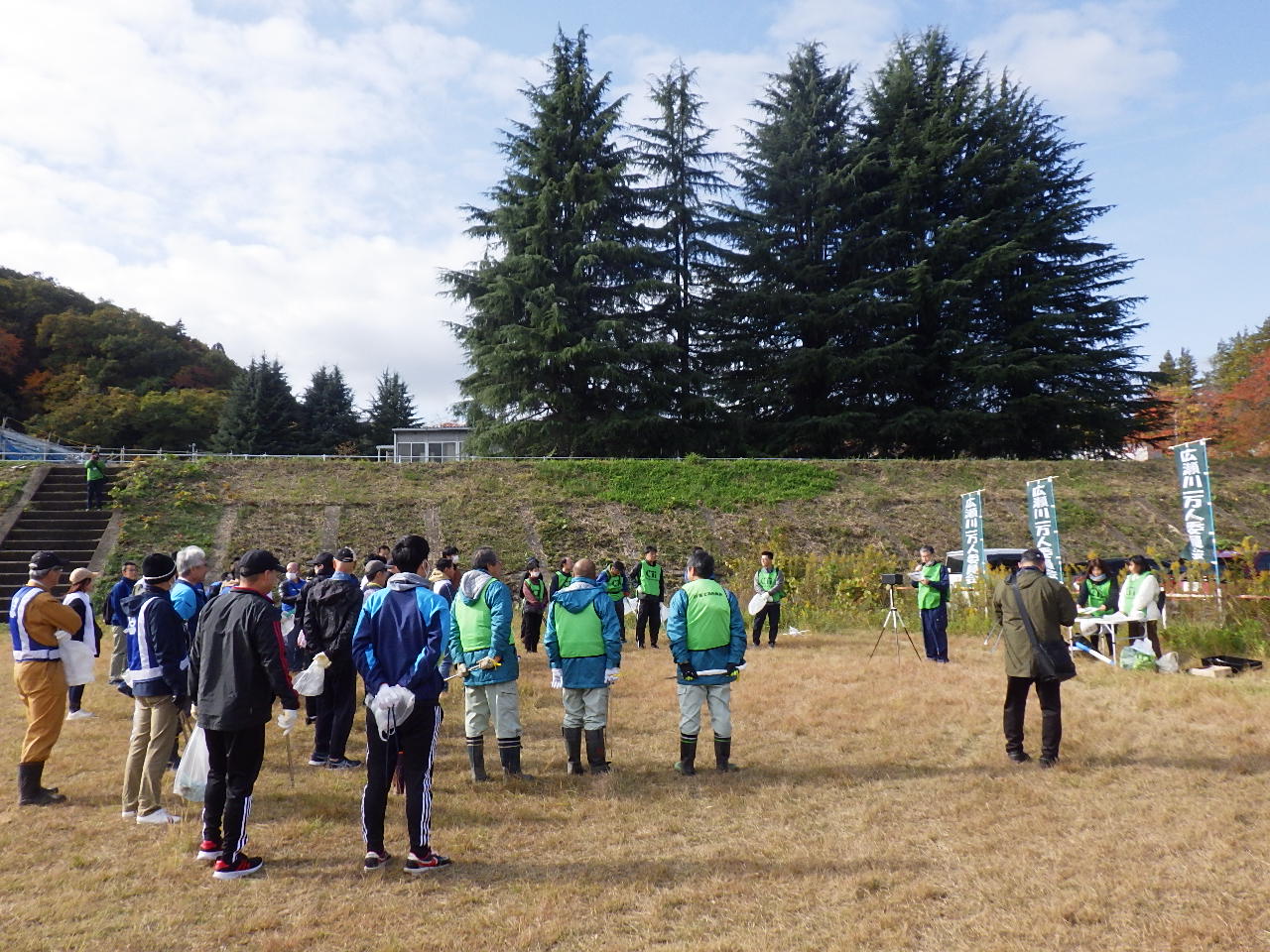今回は牛越橋会場に参加いたしました。天候も雨の予報もありましたが無事開催。芋煮会やバーベキュー大会などのゴミを置いて行かれる方がまだまだいらっしゃるとの事でしたが、