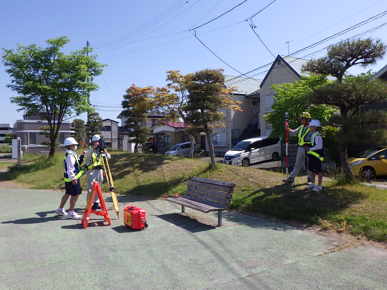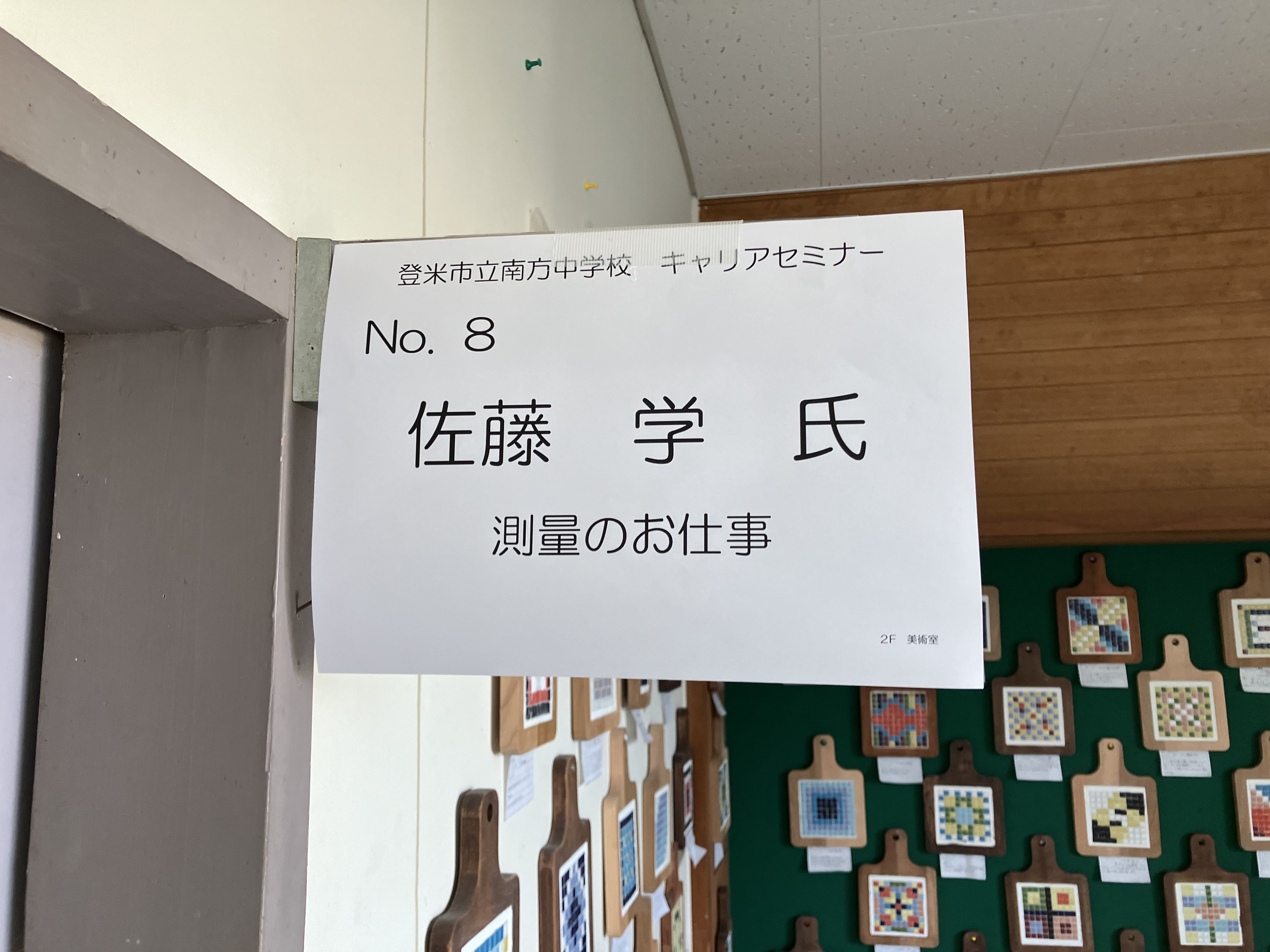 南方中学校にてキャリアセミナーのご依頼を頂きました。当日は50分を2コマ、作成した資料や測量機器・道具を持参し出来る限り測量のお仕事が伝わるようにお話しさせていただきました。