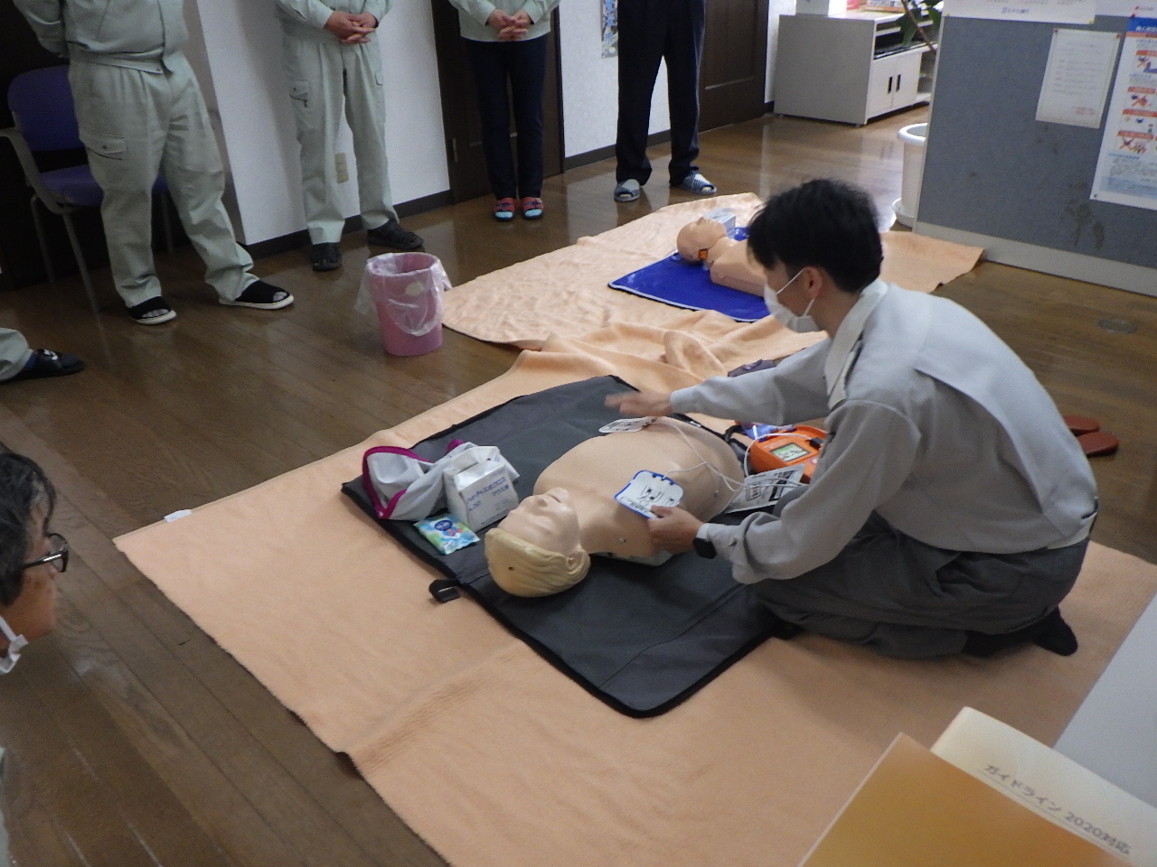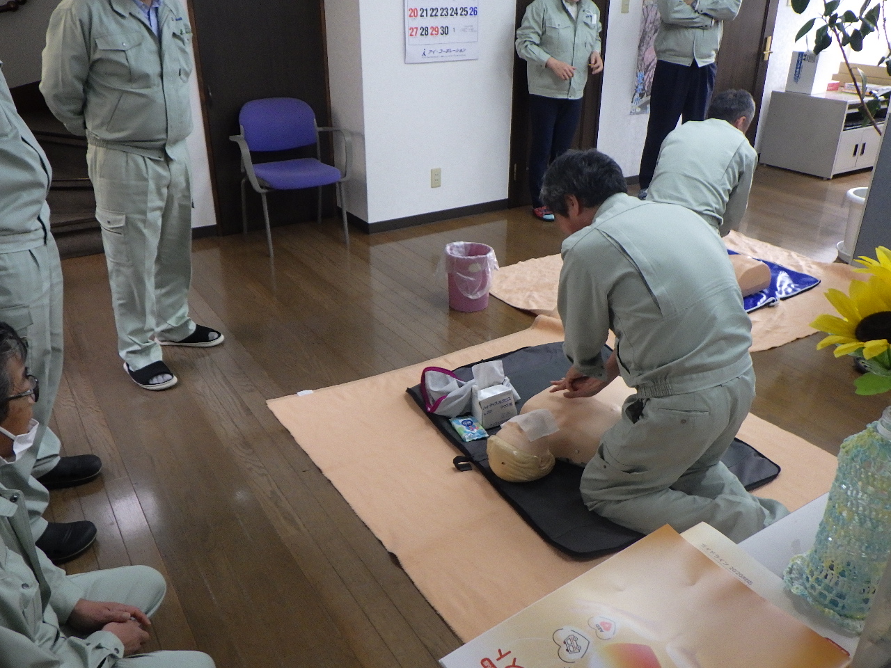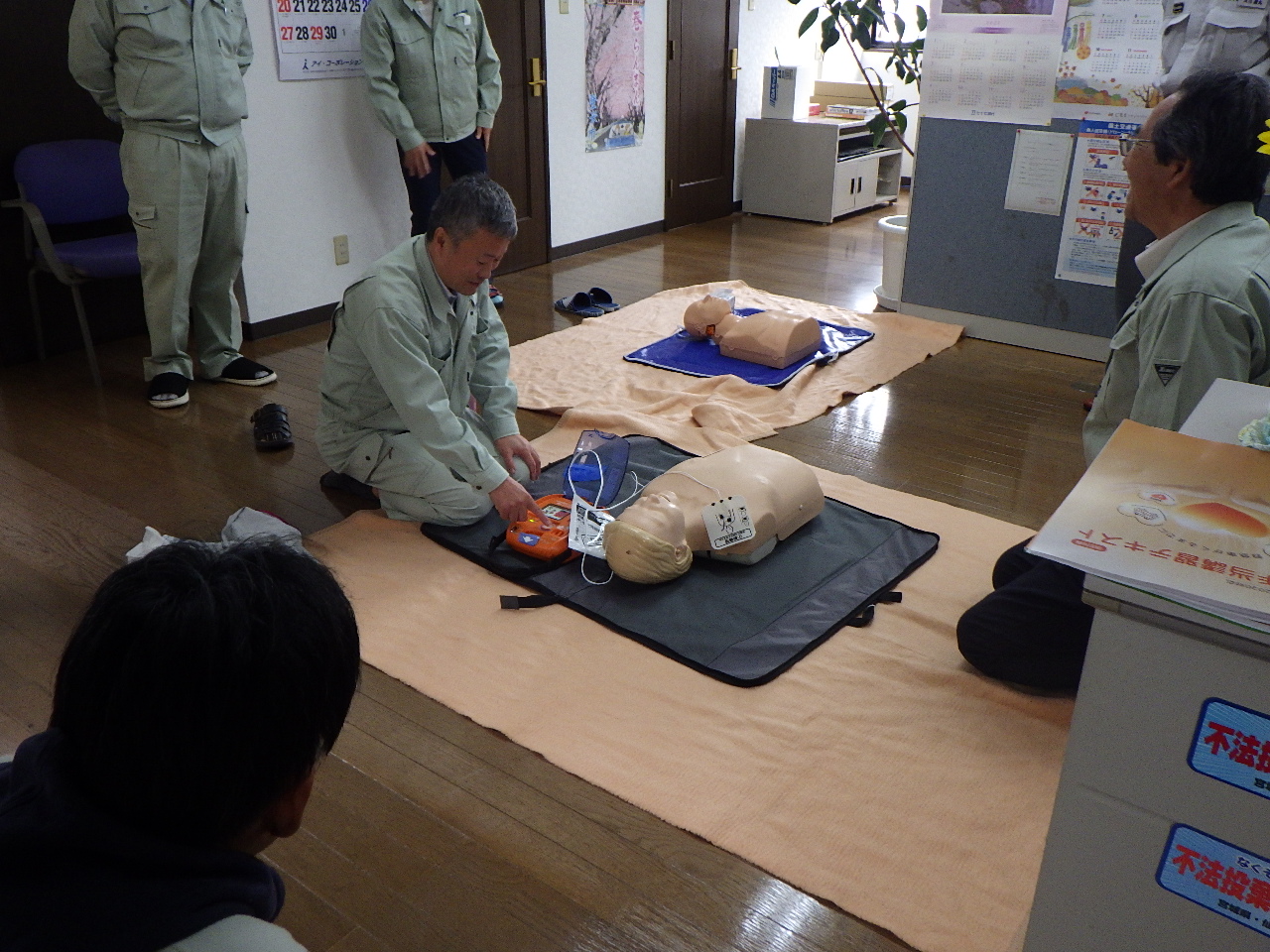 登米市消防本部から講師をお招きして普通救命講習を受講しました。前半はDVDを視聴し、後半はAEDや人型の模型をお借りして実践しました。