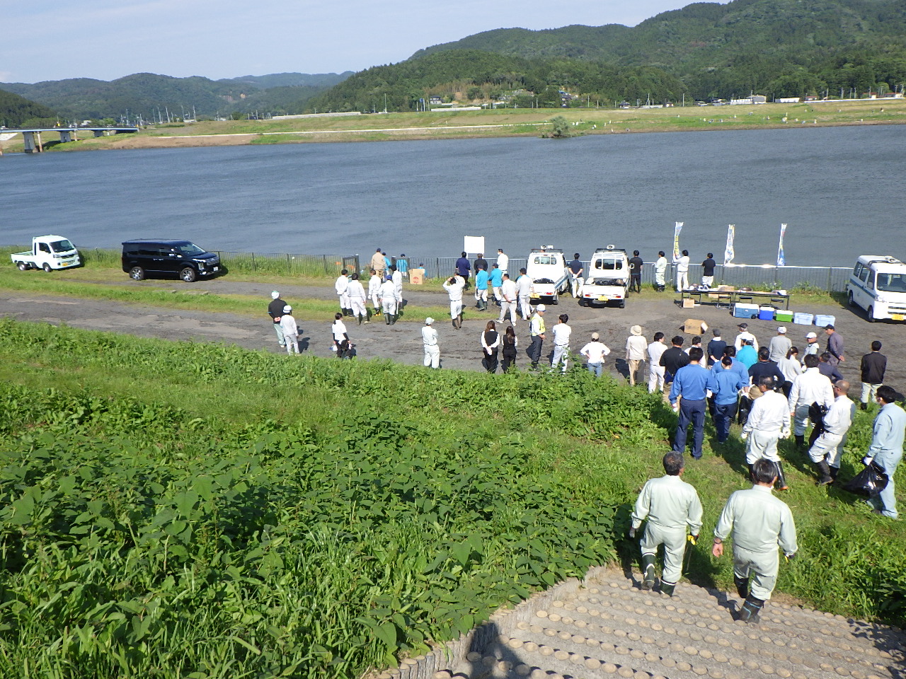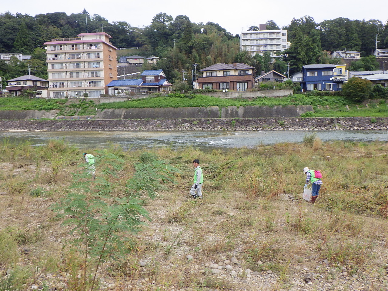 今回は牛越橋会場に参加いたしました。天候も雨の予報もありましたが無事開催。芋煮会やバーベキュー大会などのゴミを置いて行かれる方がまだまだいらっしゃるとの事でしたが、