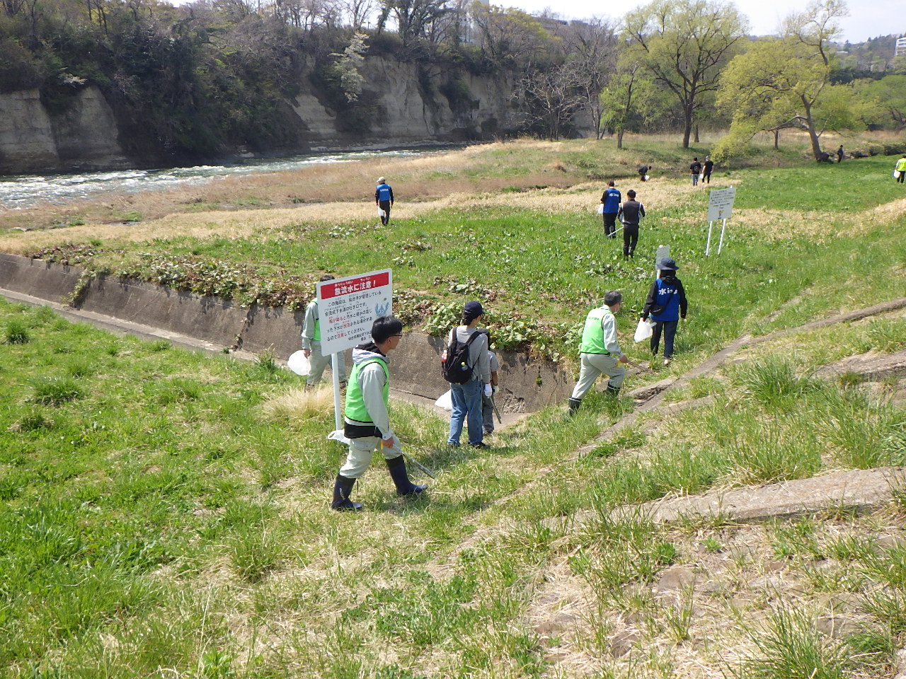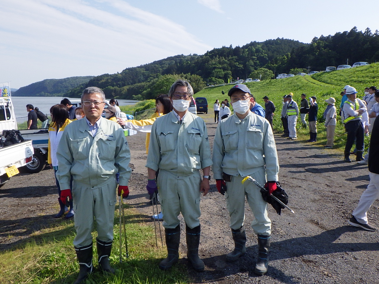 第67回水道週間行事「北上川クリーン作戦」に参加しました。今年は好天に恵まれ、登米大橋から下り松取水塔までの堤防と、